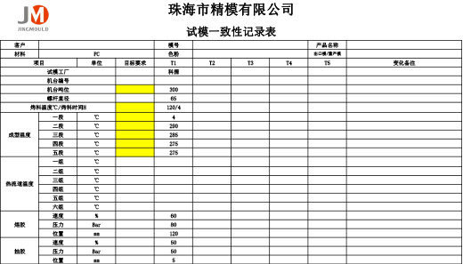 5、T1试模后修模时间大约3-5天再次T2试模,一般有3次试模基本可以达到要求。